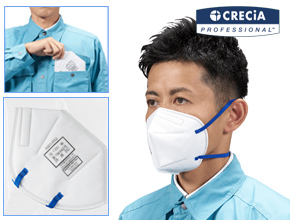 個包装折りたたみタイプで衛生的。国家検定規格DS2、米国NIOSH規格N95合格した使い捨て式防じんマスクです。